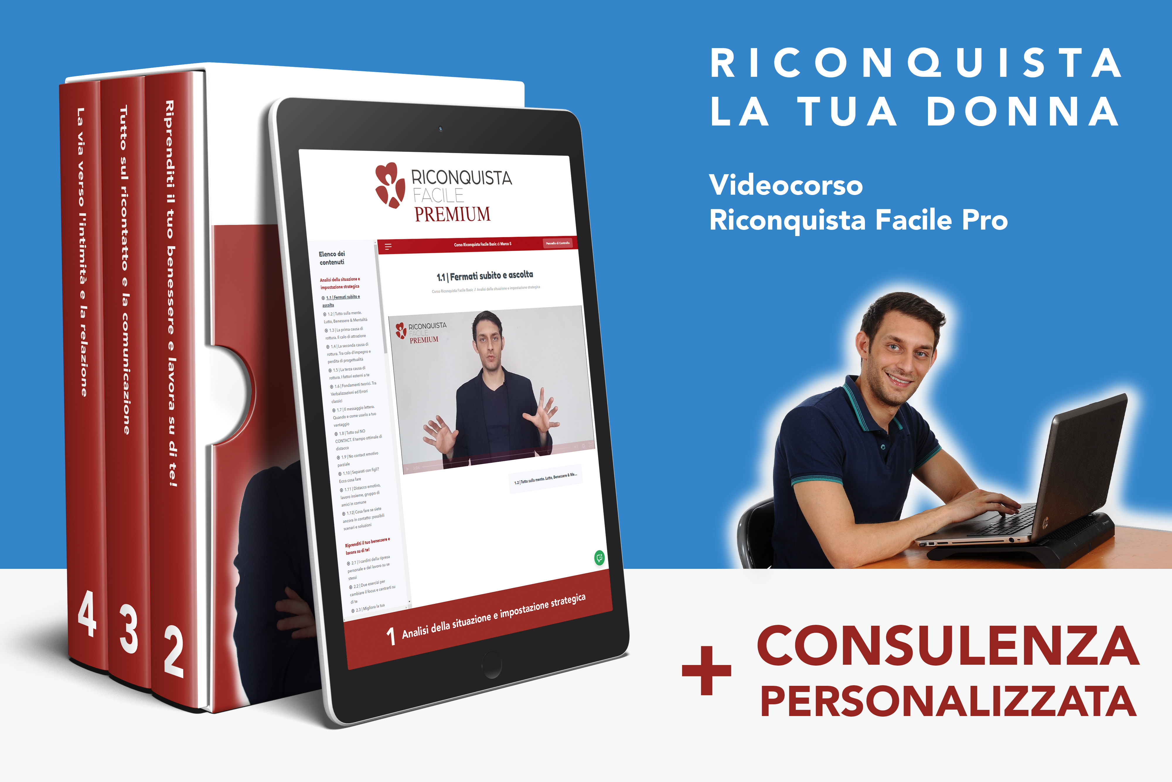 Fai tuo per sempre il videocorso completo sulla riconquista della ex: il tuo vero alleato per aumentare le probabilità di tornare con la persona che ami. NOVITÀ: acquistando da adesso il corso, avrai in omaggio una consulenza di 1 ora dal valore di 197€ con un nostro coach!